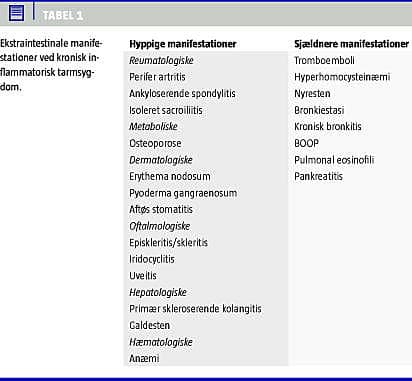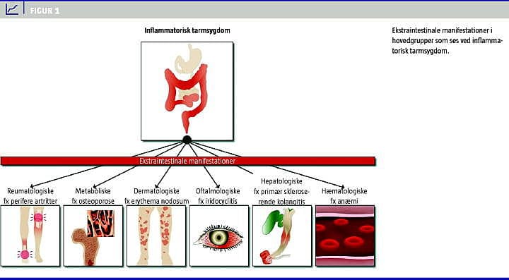 Formålet med denne oversigt er at belyse de ekstraintestinale manifestationers hyppighed, diagnostik (klinisk og paraklinisk) og behandling (Figur 1 ).