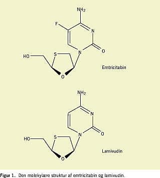 Det kemiske navn for emtricitabin er 5-fluoro-1-(2R, 5S)-(2-(hydroxymethyl)-1,3-oxathiolan-5-yl) cytosine. Emtricabin adskiller sig fra andre cytosinanaloger ved at have flourin i 5-positionen (Figur 1 ).