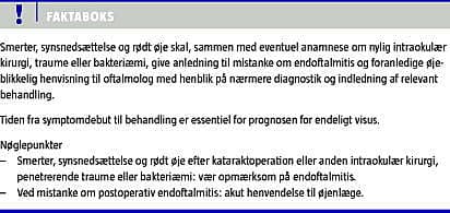 Klinisk mistanke om endoftalmitis er altafgørende for rettidig og relevant behandling.
