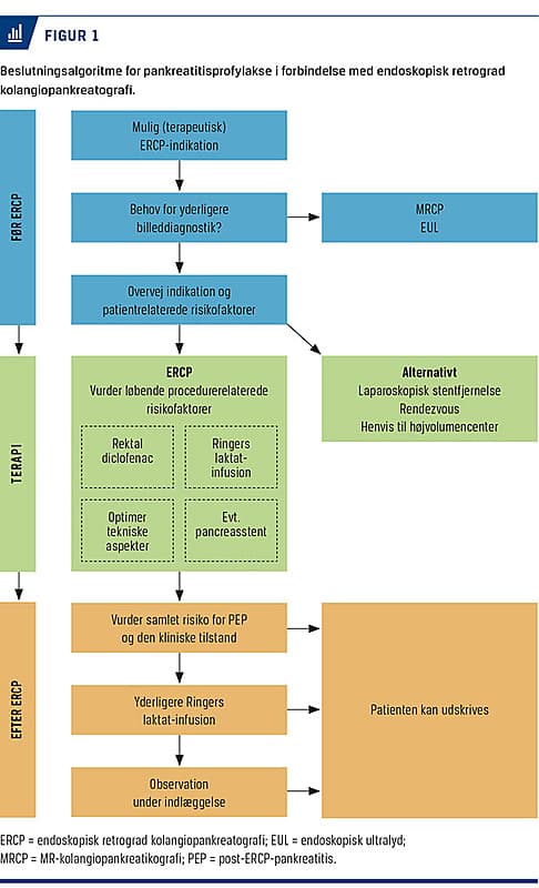 Risikostratificering på baggrund af patientrelaterede risikofaktorer for PEP bør forudgå enhver ERCP, og denne viden sammenholdt med indikationen bør danne grundlag for beslutningen om at udføre ERCP. Ligeledes bør ERCP kun anvendes i terapeutisk øjemed, og billedmodaliteter som endoskopisk ultralydskanning og MR-kolangiopankreatografi bør anvendes, hvis der er tvivl om diagnosen eller om, hvorvidt det er muligt at opnå et gunstigt resultat ved ERCP (Figur 1) [6].