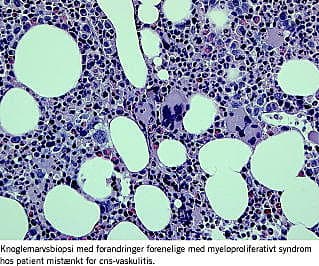 En 58-årig kvinde blev henvist til udredning for recidiverende transitoriske cerebrale iskæmiepisoder. Resultatet af en cerebral magnetisk resonans-skanning var foreneligt med vaskulitis. Undersøgelser af perifert blodbillede, C-reaktivt protein, nyre- og leverfunktion viste normale forhold, men efter ni måneder fik patienten trombocytose. En knoglemarvsbiopsi viste forandringer, der var forenelige med myeloproliferativt syndrom. Yderligere undersøgelser viste opregulering af polycytaemia rubra vera-1-genet af Janus Kinase-2-mutationen V617F, og sygehistorien illustrerer, at myeloproliferativt syndrom trods normalt perifert blodbillede er en mulig differentialdiagnose hos patienter med transitoriske cerebrale iskæmiepisoder uden anden kendt årsag.