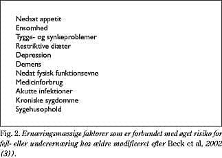 - Schroll M, Nielsen SK, Beck AM, Hølund U, Ravn AW. Retningslinier for identifikation og behandling af mangelfuldt ernærede ældre. Århus: Mejeriforeningen, 1999.