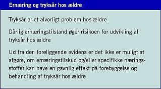 I et Cochrane-review fra 2004 [3] gennemgik man dokumentationen for og betydningen af en ernæringsindsats for forebyggelse og behandling af tryksår.