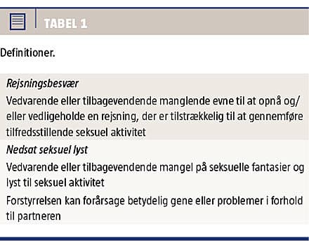 teres der om en overordnet forekomst af både rejsningsbesvær og nedsat/fraværende seksuel lyst på