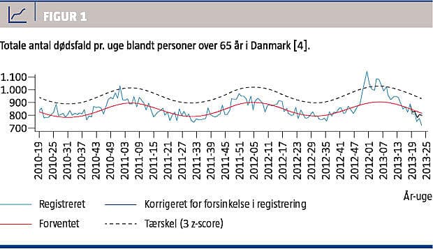 I Danmark er der 500-1.000 dødsfald i forbindelse med en typisk sæsoninfluenzaepidemi, helt overvejende hos ældre (Figur 1) [4]. Mortaliteten stiger eksponentielt med alderen; således anslås det, at 90% af de influenzarelaterede dødsfald rammer personer > 65 år [5].