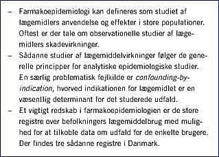 Farmakoepidemiologiske resultater er godt nyhedsstof, og der opstår jævnlig ophedede diskussioner om nyopdagede virkninger af velkendte lægemidler. Blandt de verserende sager kan nævnes østrogentilskud og brystcancer [2], maveblødninger fremkaldt af paracetamol [3] og serotoningenoptagelseshæmmere (SSRI) [4, 5], nonsteroide antiinflammatoriske stoffer (NSAID)s beskyttende virkning mod gastrointestinal cancer [6, 7], statinernes beskyttende virkning mod demens [8] og frakturer [9] samt kardiale virkninger af NSAID og selektive COX-2-hæmmere [10].