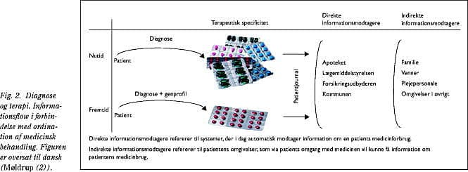 På et væsentligt punkt stiller denne udvikling nye krav til det primære sundhedsvæsen. Som det fremgår af Fig. 2, vil denne teknik, til forskel fra i dag, føre til en højere grad af terapeutisk specificitet. En afledet konsekvens heraf er, at informationsmodtagerne ligeledes vil kunne aflæse en mere specifik information om patientens sygdom og genetiske profil. Lægemidlet bliver med andre ord en genetisk informationsmarkør (2).