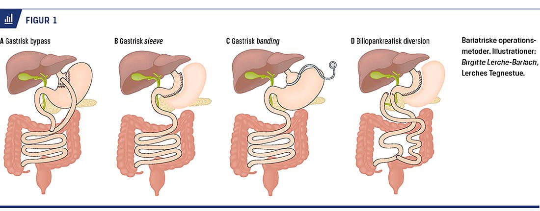 I Danmark er der foretaget over 15.000 operationer for overvægt siden 2006. Patofysiologien er meget kompleks, og ud over, at operationen har en rent mekanisk og malabsorptiv effekt, påvirkes også patienternes metabolisme [3-5]. Man har kun sammenlignet de forskellige operationsmetoder i få og meget heterogene studier [6]. Bariatrisk kirurgi startede i begyndelsen af 1950’erne [3]. Gastrisk bypass blev introduceret første gang i 1966 som en åben procedure [3]. I 1980’erne