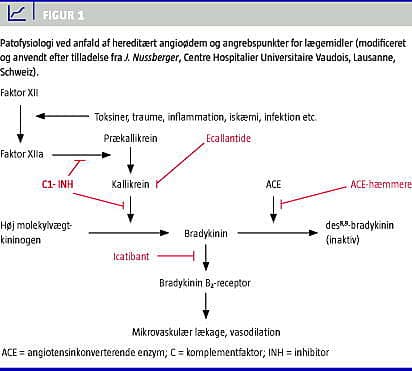 I takt med, at patofysiologien er blevet klarlagt, er der sket en stor udvikling inden for såvel forebyggelse som akut anfaldsbehandling. Det drejer sig om C1-INH-koncentrater, bradykininantagonister og kallikreinhæmmere (kallikreinhæmmeren ecallantide er kun indregistreret i USA) (Figur 1).