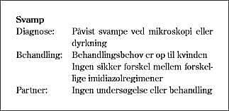 - Schmidt H, Hansen JG. Værdien af klinisk undersøgelse, mikroskopi og dyrkning ved Candida- og Trichomonas vaginalis vaginitis. Ugeskr Læger 1987; 149; 1255-8.