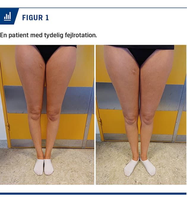 I yderligere udredning for kroniske knæsmerter indgår en fornyet anamnese, klinisk undersøgelse og typisk en MR-skanning eller en røntgenoptagelse af knæet [25]. Hvis der er mistanke om fejlrotationer, bør der gennemføres en skanning af hele benet med MR eller CT [18, 26, 27]. Kun ved alvorlige anatomiske fejlstillinger og smerter er kirurgi indiceret hos børn og unge [28] (Figur 1). I nogle tilfælde ses tiden an, indtil væksten er slut, idet rotationsfejlstillinger ofte normaliseres under væksten [27]. Artroskopi er ikke indiceret til udredning af smerter fra knæets forside, en undtagelse er ved mistanke om symptomatisk plica synovialis (medial og infrapatellar), hvor det skal overvejes [22].