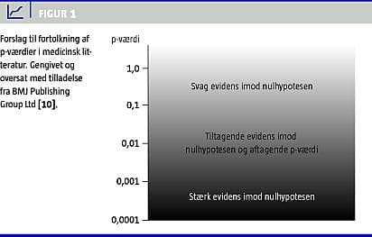 I 1994 satte Altman spørgsmålstegn ved kvaliteten af klinisk forskning, fordi den tilsyneladende drejede sig mere om kvantitet end kvalitet [8]. Misbrug af statistiske test til at generere statistisk signifikante resultater blev eksemplificeret af James Mills i 1993 [9]. Han beskrev to former for datatortur, hvoraf den ene omfattede multiple test og massesignifikans. Der er siden fremsat forslag om en mere adækvat håndtering af p-værdier, herunder angivelse af de faktiske p-værdier i stedet for oplysning om, at p-værdien lå under 5%-niveauet, fortolkning af de medicinske resultater i lyset af studietype og anden tilgængelig evidens og endelig overvejelser om bias eller confounding factors i de tilfælde, hvor der foreligger lave p-værdier [10]. I stedet for dikotomisering af resultater til enten at være statistisk signifikante eller statistisk ikkesignifikante, bør p-værdien fortolkes i et kontinuerligt spektrum (Figur 1 ).