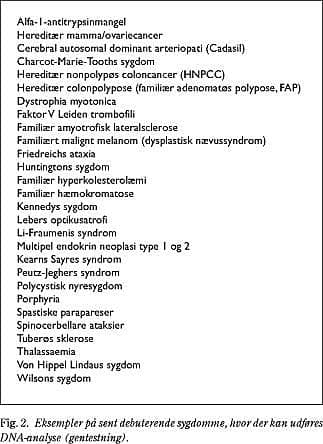 Med den »nye genetik« er det blevet muligt i højere grad at angive personers risiko for at få bestemte sygdomme. De tte kan utvivlsomt få stor indflydelse på såvel befolkningens som sundhedspersonalets opfattelse af sygdom/sundhed. Med genetisk screening vil man evt. kunne udpege personer med øget risiko for f.eks. diabetes, hjerte-kar-sygdomme og kræft. Erfaringsmæssigt er det svært at forholde sig til en risiko. »Risiko« kan defineres som et udtryk for en sandsynlighed for, at noget ubehageligt vil indtræffe. Usikkerhed er en fundamental egenskab ved risikobegrebet. Der vil derfor altid være basis for en fortolkning. Her vil indgå en afvejning af fordele og ulemper, og der er store individuelle forskelle på, hvorledes man reagerer på truende informationer. Erfaringer med gentestning for Huntingtons sygdom, som er dominant arvelig med 50% risiko for førstegradsslægtninge, viste at 60-70% af raske slægtninge havde givet udtryk for et ønske om gentestning, men da muligheden faktisk fo-relå benyttede kun 10-15% sig af den. Dvs. den største del af højrisikoindividerne foretrak at leve i uvished med håbet om, at de ikke havde arvet sygdomsanlægget. I en metaanalyse af effekten af genetisk rådgivning hos en gruppe kvinder med øget risiko for arvelig brystkræft konkluderedes det, at rådgivningen generelt resulterede i mindre ængstelse, og i at personerne fik en bedre forståelse af deres risiko (9). Men der mangler langsigtede studier over effekten af rådgivningen på kvinders valg af forebyggende strategier, f.eks. mammografiovervågning.