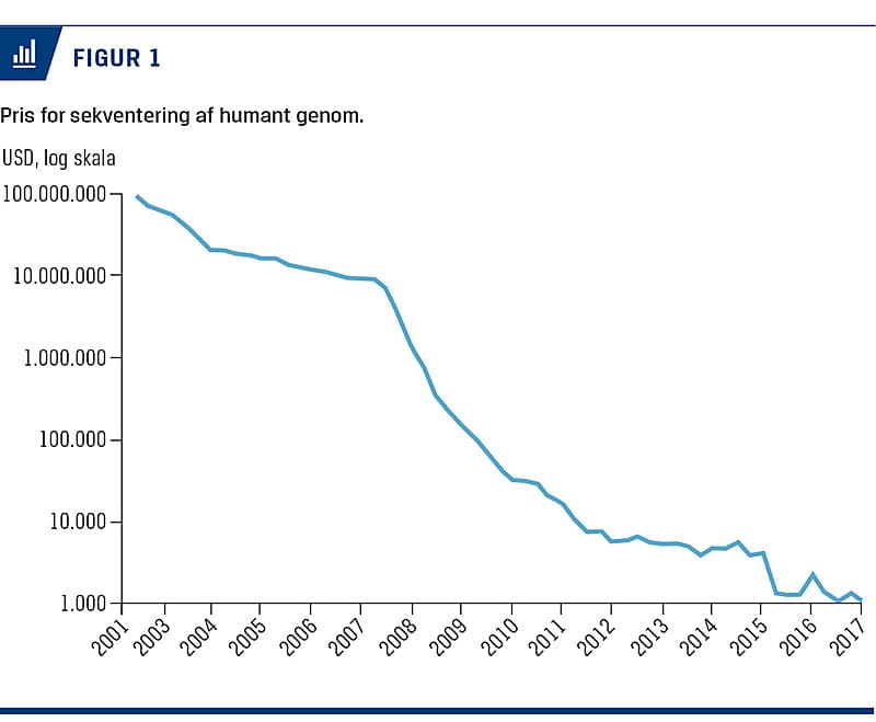 I dag kan man få sekventeret sit genom for godt 10.000 kr. [1] (Figur 1). Dette åbner for en hel verden af ny viden og mulighed for at individualisere behandling