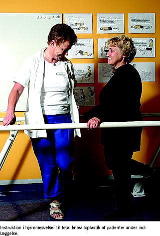 Indsættelse af nyt knæled har haft stor betydning ved at øge livskvaliteten gennem reduktion af patienternes smerter og øget bevægelighed. I lighed med mange andre operationstyper har denne været genstand for en konstant udvikling, hvilket bl.a. har medført optimerede, standardiserede procedurer, inklusive accelererede patientforløb [1, 2]. Således er indlæggelsestiden blevet markant reduceret, dels som følge af grundig, præoperativ patientinformation, optimeret smertebehandling og tidligere påbegyndelse af rehabiliteringen under indlæggelsen - og dels som følge af en ændret organisation med optimering af de øvrige behandlingsprincipper inklusive udskrivelse, når kriterierne er opnået [1]. Vejen til hurtig reetablering af forventet funktions- og aktivitetsniveau er derfor banet, hvorfor viden om effekt og nødvendighed af efterfølgende genoptræningsforløb er væsentlig [2].