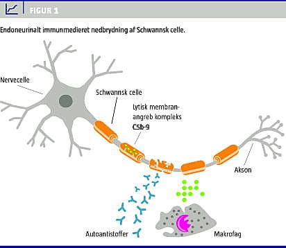 Behandling med intravenøs immunglobulin (IVIg) i store doser (2 g/kg legemsvægt) anvendes til personer med neuromuskulære lidelser, specielt de immunmedierede perifere neuropatier Guillian-Barrés syndrom (GBS), kronisk inflammatorisk demyeliniserende polyradikuloneuropati (CIDP) og multifokal motorisk neuropati (MMN) [1]. Figur 1 illustrerer patogenesen ved CIDP og GBS. IVIg er humant immunglobulin G, der stammer fra oprenset plasma