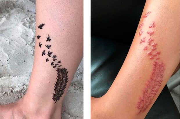 Initialt var der ingen reaktion på tatoveringen, men efter nogle uger kom der tiltagende hævelse, rødme, ømhed og svie i området. Den akutte dermatitis behandledes med topikal gruppe III-steroidcreme.