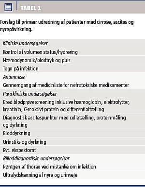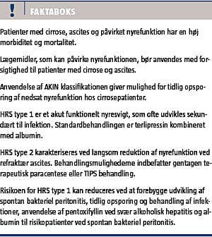 Nyrepåvirkning hos en patient med cirrose og ascites bør udredes hurtigt. Korrekt håndtering er nødvendig for at afværge nyresvigt og død.