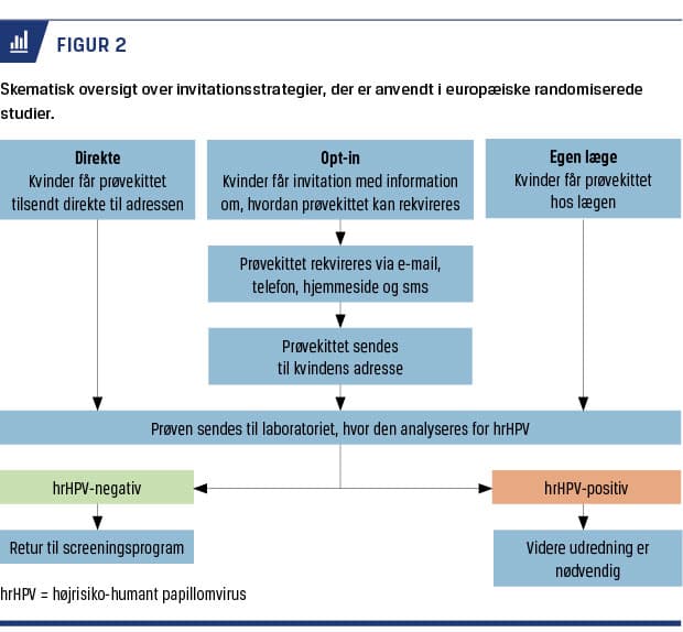 Tilbud om hjemmeopsamlede prøver har vist sig at øge deltagelsen i screening, og invitationsstrategien har betydning for, hvor stor effekten er (Figur 2).