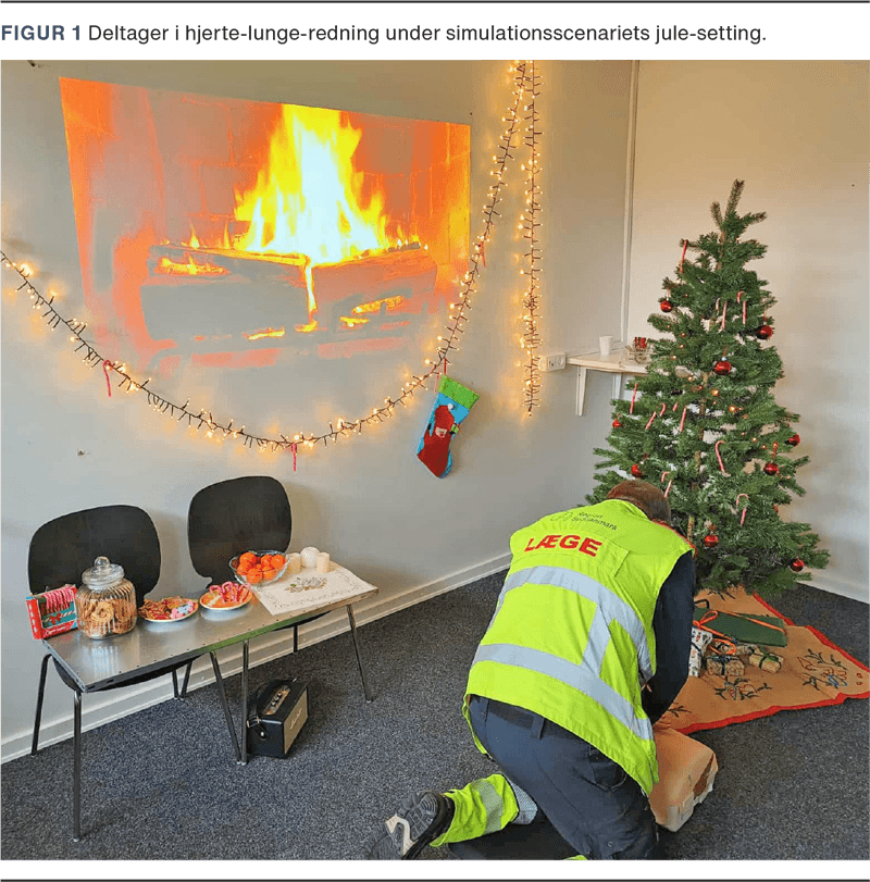 Studiet blev udført hos Præhospital Syd – Station Odense C. Undersøgelsen fandt sted i uforstyrrede lokaler, indrettet med en juleaftenslignende atmosfære. Rummet var indrettet med et dekoreret juletræ, julegaver, hjemmebagte julesmåkager og alkoholfri gløgg. En elektronisk pejs kastede et blidt, varmt skær, mens manglende udluftning skabte den velkendte lumre varme i rummet (Figur 1).