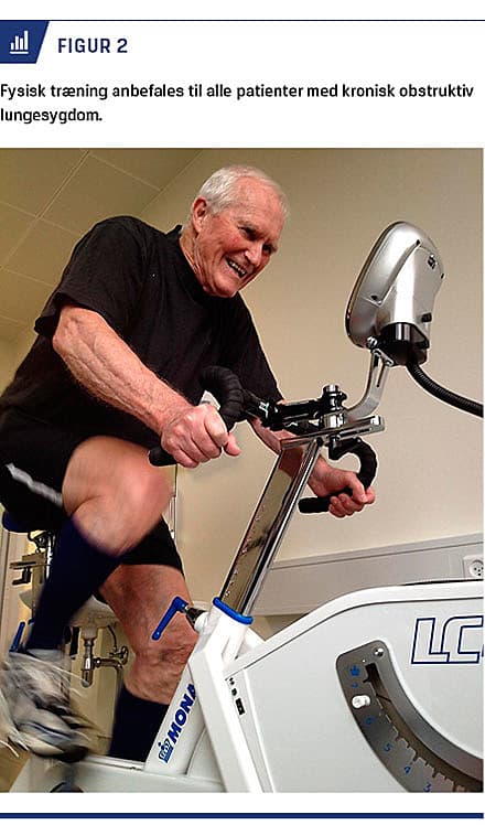 Der er i dag tilstrækkelig evidens for, at lungerehabilitering forbedrer den helbredsrelaterede livskvalitet og gangdistance, samt at disse parametre forbedres uanset sygdommens sværhedsgrad [3, 4], og i et nyligt publiceret systematisk review med 86 studier med forskellige studiedesign påviste man desuden konsistente positive effekter af fysisk aktivitet på antallet af eksacerbationer og mortaliteten [6].