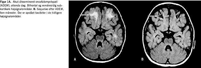 Han havde tegn på svær encefalopati. Ved en MR-skanning af cerebrum fandtes typiske ADEM-forandringer. Spi-nalvæsken viste forhøjet protein, der kan ses ved cerebrale