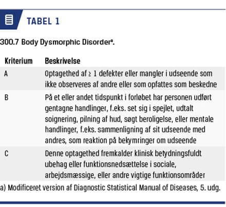 delusional disorder til 0,05-0,1% [10]. Forekomsten af BDD er i udenlandske studier fundet at være få procent i normalbefolkningen, men meget højere i kliniske populationer og højest hos plastikkirurgiske patienter med kosmetiske problemer [11].
