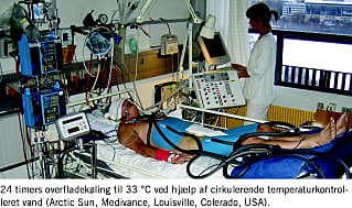 Behandlingen af hjertestop er baseret på European Resuscitation Council Guidelines For Resuscitation 2005. Hypotermibehandlingen påbegyndes på skadestedet, såfremt patienten ikke vågner efter genoplivningen. Nedkølingen fortsætter på sygehuset med isposer og køledragt samt 30 ml/kg 4 °C kold intravenøs isoton NaCl eller Ringers væske over 30 minutter. Patienter med kardiogent shock eller lungeødem undtages.