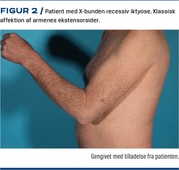 X-bunden recessiv iktyose er associeret med øget risiko for en række ekstrakutane sygdomme, heriblandt asymptomatiske korneale uklarheder, kryptorkisme og ADHD [14], og endvidere ses der relativt ofte manglende spontan fødselsinduktion og protraheret fødsel pga. steroidsulfatasemangel i den føtale placenta [3, 12].