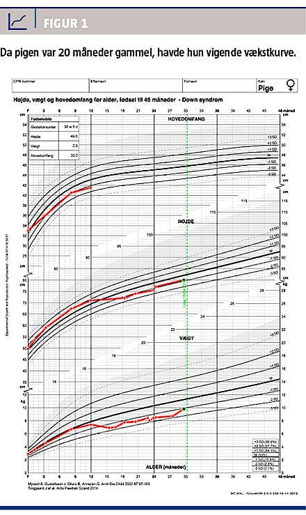 En pige blev født til terminen efter en ukompliceret graviditet og fødsel, men indlagt få dage senere pga. hypoglykæmi og behov for continuous positive airway pressure. Et par uger gammel blev hun diagnosticeret med Downs syndrom.