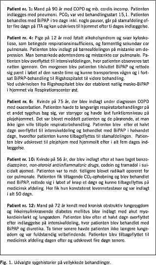 I Tabel 1 angives køn, alder, behandlingsvarighed og arterieblodgasværdier før behandling for samtlige patienter med vellykkede NPPV-behandlinger. Enkelte sygehistorier er fremhævet i Fig. 1 .