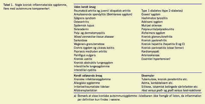 Mange af de i Tabel 1 anførte sygdomme er hver især næppe en, men en gruppe af systemiske sygdomme med mere eller mindre organspecifikt præg. For de fleste gælder, at sygdomsårsagen(erne) er ukendt(e). Selv om vor viden er utilstrækkelig til at danne basis for helbredende behandlingstilbud, har forskningen dog givet indsigt i patogenetiske mekanismer, som kan bidrage til udviklingen af nye og effektive behandlinger.