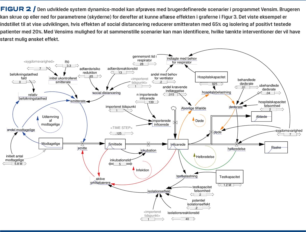 I denne artikel introduceres teknikken system dynamics (SD) [1, 2]. Teknikken er en type computersimulering, som giver indsigt i, hvordan tiltænkte interventioner påvirker sundhedssystemer. I den nuværende coronavirus disease 2019 (COVID-19)-pandemi bygger politiske tiltag på offentliggjorte matematiske modeller, hvori sammenhænge imellem parametre forudsætter programmeringskendskab [3]. Uden kendskab til programmering kan der derfor ikke stilles indgående spørgsmål til logik og antagelser.
