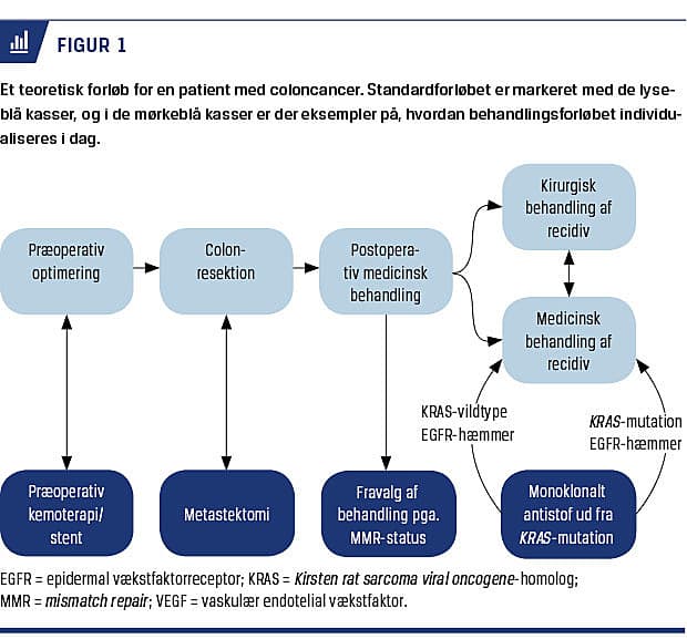 Hjørnestenen i behandlingen af patienter med lokal colon- og rectumcancer er kirurgi. Behandling af rectumcancer har igennem de seneste årtier gennemgået en rivende udvikling med optimering af kirurgisk og medicinsk behandling, herunder radioterapi. En forståelse af sygdommens heterogenitet har medført, at man nu råder over et differentieret individualiseret behandlingsforløb for patienter med rectumcancer. Udviklingen har været så drastisk, at den relative femårsoverlevelse i Danmark efter ikkemetastatisk rectumcancer er lige så høj som efter ikkemetastatisk brystcancer [3]. Den positive udvikling
