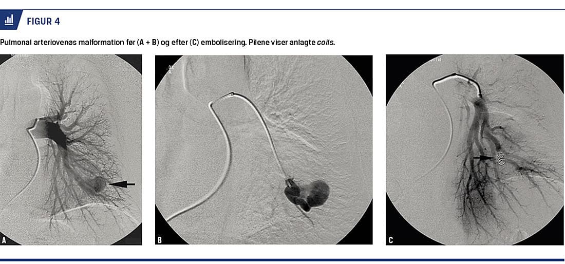Perkutan sklerosering er et behandlingstilbud til patienter med venøse og lymfatiske malformationer og intravaskulær okklusion er et tilbud ved venøs insufficiens som f.eks. varicer eller pelvic congestion syndrome. Embolisering af pulmonale arteriovenøse malformationer har helt erstattet kirurgi (Figur 4).