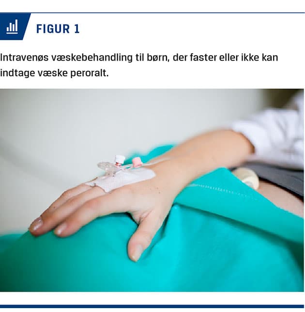 I denne artikel gives der anbefalinger om i.v.- vedligeholdelsesvæske til børn, der faster eller ikke kan indtage væske peroralt, f.eks. pga. kirurgi, pneumoni, sygdom i centralnervesystemet (CNS) eller gastroenteritis, efter initial stabilisering (Figur 1). Anbefalingerne omfatter børn over en måned med normalt elektrolyt- og blodsukkerniveau. Undtaget er børn med lever-, nyre- eller hjertesygdom.