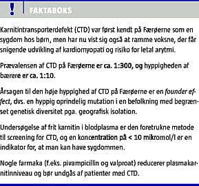 Sygdommen karnitintransporterdefekt (CTD) er meget hyppigere på Færøerne end andre steder i verden, og den har vakt stor interesse i de seneste år, ikke mindst blandt færingerne. Dette skyldes primært to uventede dødsfald af unge færøske voksne - et mønster man ikke har set før i forbindelse med CTD.