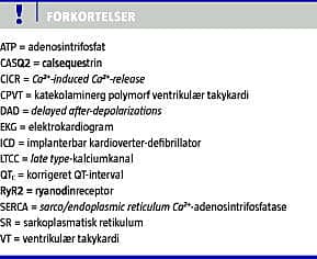 Frekvensen af mutationsfund i CPVT-patienter lader til at være høj, og et nyligt studie rapporterer således, at man i 34/44 (77%) fandt enten en RyR2- eller CASQ2-mutation [15].