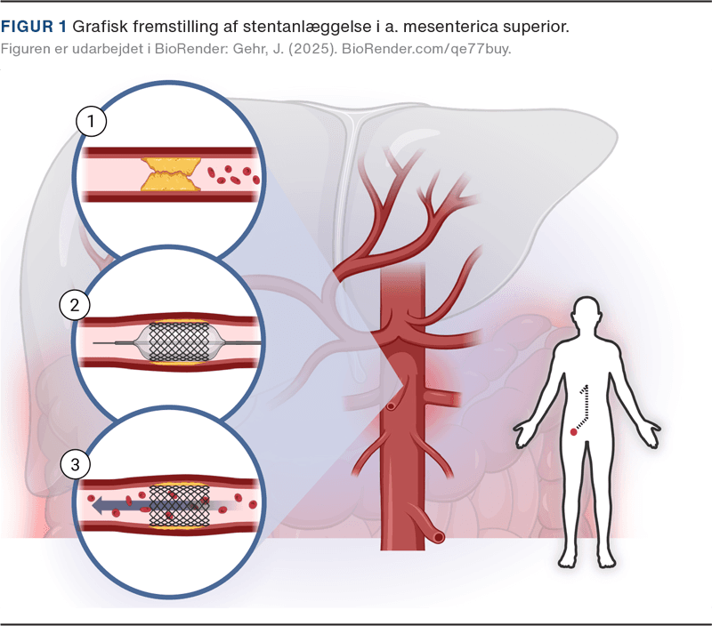 Selv om de grundlæggende principper bag ballonudvidelser og stents er uændrede, gør nutidens guidewires og katetre det muligt at behandle stadig mere perifere og teknisk udfordrende kar [2]. Således er rekanalisering nu muligt fra fodens perifere arterier til de fine kar, der forsyner tarmene og abdomens øvrige organer. Et vigtigt eksempel er behandlingen af tarmiskæmi forårsaget af aterosklerose – en alvorlig tilstand forbundet med høj morbiditet og mortalitet, som i dag primært behandles med endovaskulær rekanalisering [3] (Figur 1).