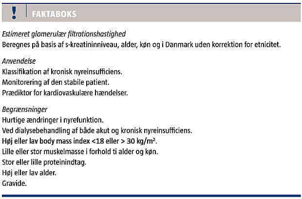 Formålet med denne artikel er at give en bedre forståelse for anvendelsen af og begrænsninger for brugen af eGFR i den daglige kliniske praksis.