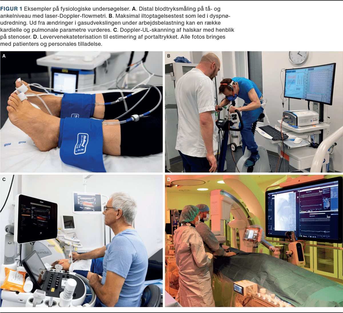 Klinisk fysiologiske undersøgelsesmetoder omfatter måling af tryk, strømningshastighed, stofkoncentration, stofskifte og rumfang m.m. En række af specialets afdelinger råder over apparatur til bl.a. lungefunktionsundersøgelse, UL-skanning, iltoptagelsesmåling, invasiv og noninvasiv trykmåling, osteodensitometri (DXA) og adgang til interventionsstuer, se Figur 1. Flere af modaliteterne findes også i andre specialer, og lokale forhold har betydning for undersøgelsesudbuddet.