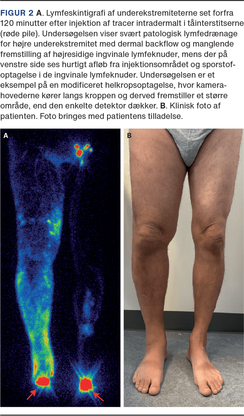 Planare (todimensionelle) billeder gengiver gammaemissionerne direkte og øjeblikkeligt, hvilket gør dem særligt velegnede til fremstilling af dynamiske processer. Et eksempel er lymfeskintigrafi, hvor man efter indgift af en beskeden aktivitetsmængde f.eks. distalt på en ekstremitet følger lymfens løb proksimalt og derved får fremstillet eventuel abnorm lymfedrænage (Figur 2).