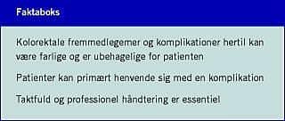 Komplikationer kan opstå som følge af fremmedlegemets introduktion eller som følge af ekstraktionen. Man skal være opmærksom på, at komplikationer ofte opstår hos personer, som selv har fjernet det kolorektale fremmedlegeme, og som således primært henvender sig med en komplikation [6, 7].