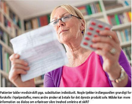 I den forbindelse synes det at være vigtigt, at læger og apotekspersonale har øje for de individuelle – og dog logiske – ræsonnementer, som medicinskift kan afføde hos nogle patienter. Foruden de oplagte misforståelser om forskelle i navn og dosering kan en manglende forventning om en lige så god virkning medføre nonkomplians [1]. En dialog vil kunne hindre mange unødigt negative konsekvenser af medicinsubstitution.