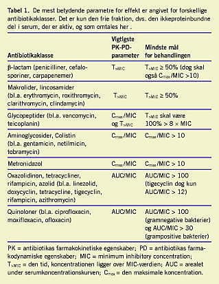 I Tabel 1 er vist, hvilke PK-PD-regler, der gælder for de forskellige antibiotikagrupper.