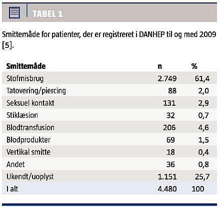 Det estimeres, at ca. 16.000 personer i Danmark har kronisk hepatitis C (KHC), hvoraf ca. halvdelen er diagnosticeret [1]. Infektion med hepatitis C-virus (HCV) bliver kronisk hos ca. 65% af de smittede, og