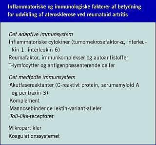 Adskillige inflammatoriske faktorer og immunologiske mekanismer for udviklingen af aterosklerose ved RA er beskrevet, og i det følgende gives en oversigt de bedst karakteriserede.