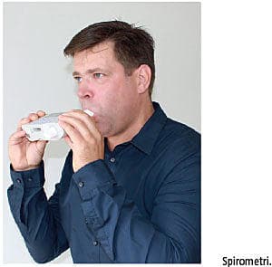 Spirometri med måling af forceret eksspiratorisk volumen i første sekund (FEV1) og forceret vitalkapacitet (FVC) er en nødvendighed for diagnosen. De lungefunktionsværdier, som vurderes og sammenlignes med normalværdierne, bør i forbindelse med diagnoseproceduren være postbronkodilatatoriske, det vil sige efter inhalation af en korttidsvirkende beta-2-agonist.