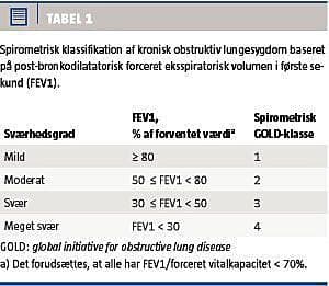 SPIROMETRISK INDDELING AF KRONISK OBSTRUKTIV LUNGESYGDOM