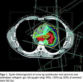 Overlevelsen hos patienter med lungekræft er dårlig, og har i hvert fald frem til 1994 været ringere i Danmark end i de fleste andre europæiske lande [1]. Der har været givet mange forklaringer på denne situation. Især har sen diagnostik været nævnt som årsag til problemet, og at der dermed er for få patienter, der bliver opereret for lungekræft. En anden mulighed er, at behandlingstilbuddet i Danmark har været for begrænset. Specielt har strålebehandling af ikke-småcellet lungekræft (NSCLC) været benyttet mindre i Danmark end i andre lande. Imidlertid tilbydes strålebehandling i stigende grad til danske patienter. Der er ikke tidligere offentliggjort danske resultater af moderne strålebehandling, hvorfor der i denne artikel fremlægges erfaringer fra kurativt anlagt strålebehandling af NSCLC, som den er blevet tilbudt på Onkologisk Afdeling på Odense Universitetshospital siden 1995.